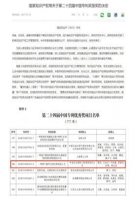 中国专利奖是我国专利领域的最高奖项,自1989年创立,迄今已成功举办24届专利奖评选,遴选出一系列创新质量高、运用效益好、示范效应强的专利项目,生动展现了我国知识产权事业发展的质量导向、质量追求和质量成效,具有极高的公信力、代表性和影响力。