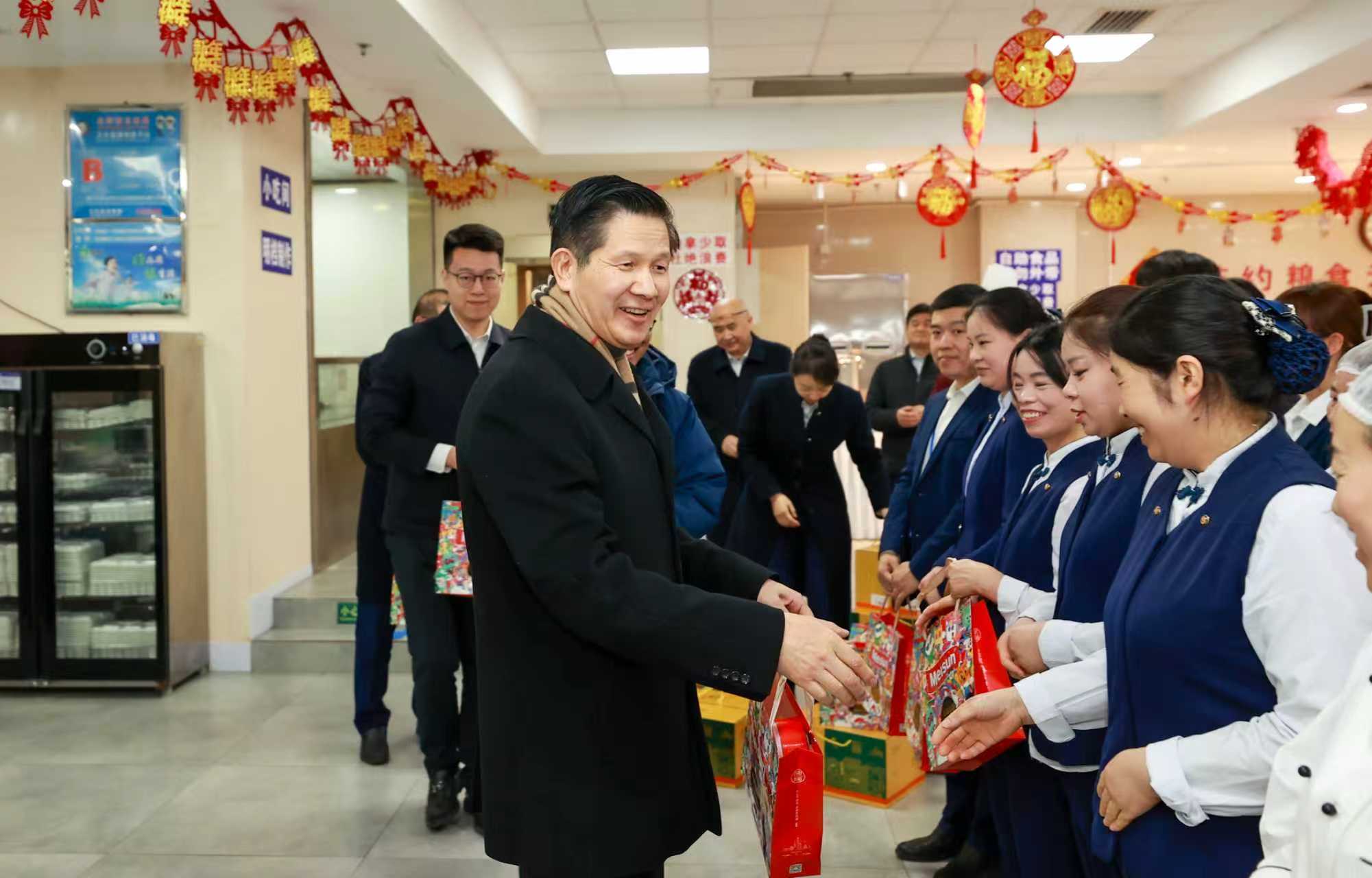 陈建光首先深入中冶物业中冶大厦项目,实地走访慰问一线干部员工,并对大厦门岗、职工餐厅及物业员工宿舍开展节前检查。陈建光对全体物业人员长期以来的坚守与付出表示充分肯定和衷心感谢,并表示,物业后勤岗位虽然平凡,但责任重大、使命光荣。中国中冶总部的平稳运行,离不开物业员工的辛勤付出与无私奉献,祝愿大家在新的一年里身体健康、阖家幸福、万事如意。他叮嘱大家,节日期间要时刻紧绷消防安全这根弦,以高度的责任感全面排查并消除各类风险隐患,扎实做好大厦基础服务保障工作,为企业稳健发展保驾护航。